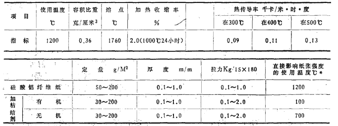 硅酸鋁耐火纖維紙具有重量輕、耐高溫、導(dǎo)熱系數(shù)低、抗熱震性好,對電絕緣、隔熱保化學(xué)性能穩(wěn)定,不受油、蒸.氣、水和許多溶劑影響,能耐一般的酸鹼(只受氫氟酸、磷酸和強(qiáng)鹼所侵蝕),與很多金屬(Ae、Pb、Sh、Ch及其合金)不潤濕,F(xiàn)為越來越多的生產(chǎn)和科研部門采納使用。有關(guān)理化性能列表于后: