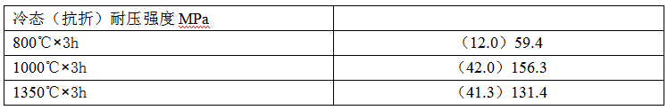 為了探索莫來石在復(fù)合膠結(jié)劑中形成的溫度,我們作了如下試驗(yàn),對1#試樣的生坯分別以800℃×3h,1000℃×3h和1350℃×3h燒后測其冷態(tài)強(qiáng)度,結(jié)果如下: