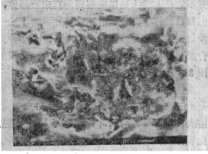 為了探討復(fù)合結(jié)合劑在莫來石結(jié)合剛玉磚中所起的作用,我們對1#試樣1500℃×3h燒后和1000℃×3h燒后的樣塊作了電鏡分析,其圖像如圖1和圖2所示;