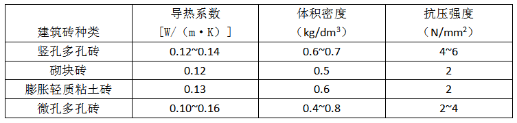 表1 一些輕質(zhì)保溫建筑磚的性能